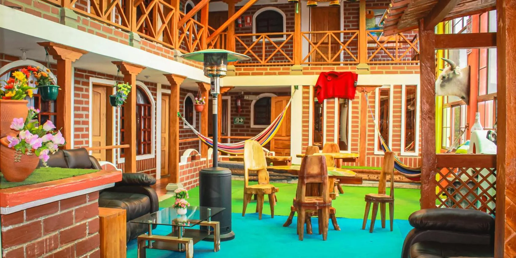 Llullu Llama Mountain Lodge mempunyai taman, ruang tamu berkongsi, teres dan restoran di Hacienda Provincia.