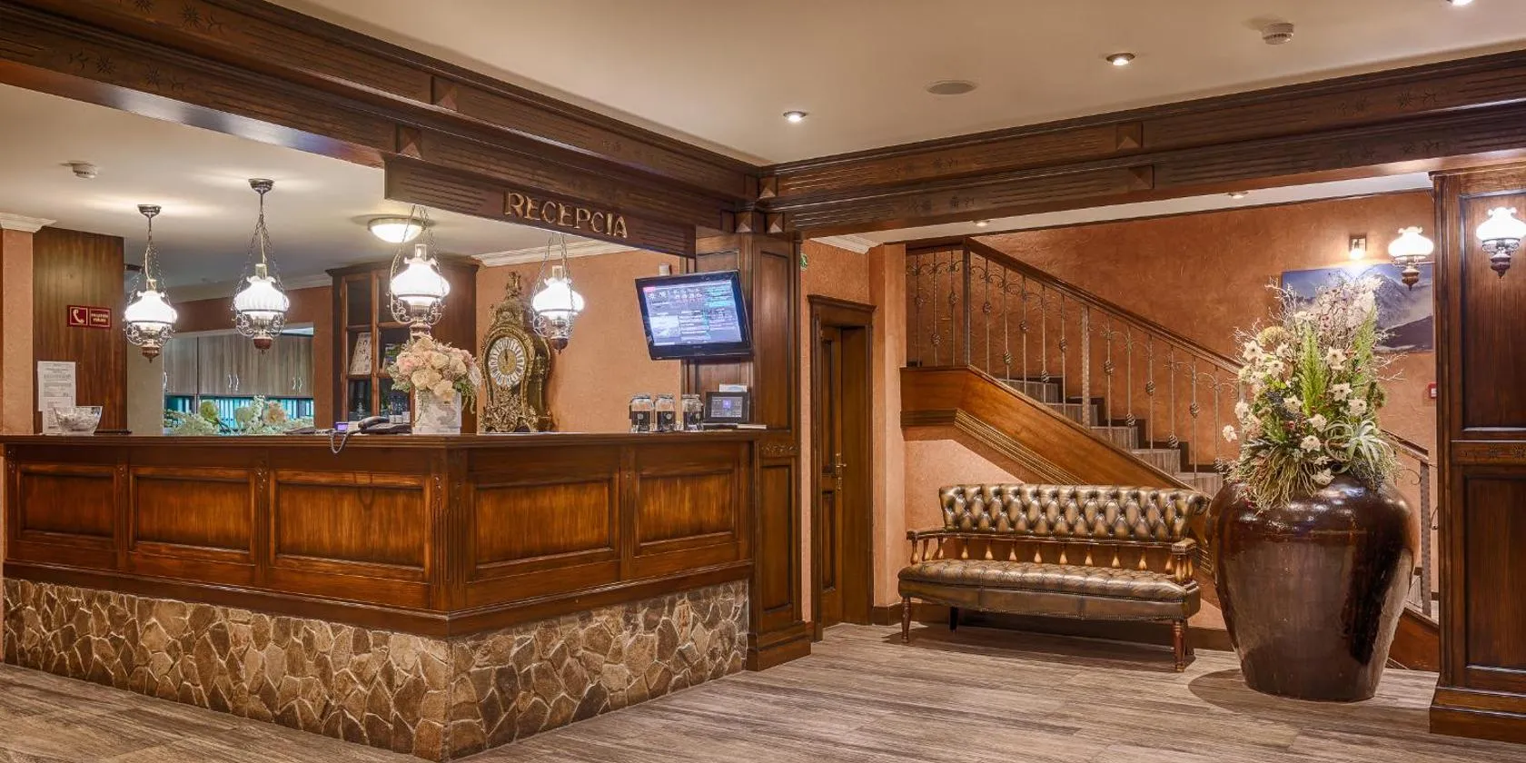 The modern Panorama Resort hotel is located directly at Štrbské Pleso. A wellness area with Finnish, steam, and infrared saunas can be found on the ground floor just behind the reception.