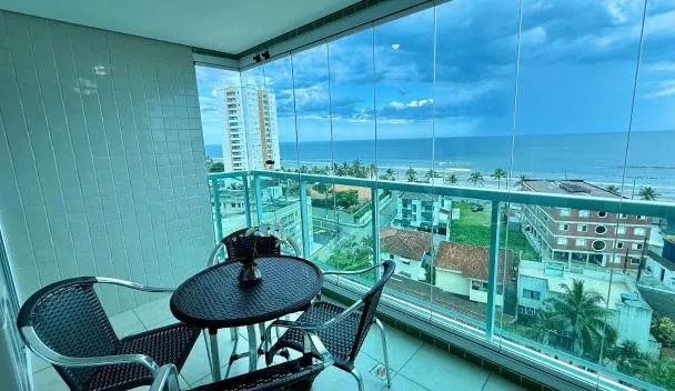 AP Aconchegante a 60 Metros da Praia, vista mar 302, tempat penginapan dengan taman, terletak di Praia Grande, 2-minit berjalan kaki dari Pantai Solemar, 22km dari Pusat Membeli-belah Litoral Plaza,...