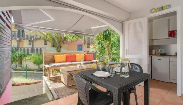 サンタンヌにあるAppartement Vanille 2はポワント・マランビーチから1km以内、アンス・カリタンビーチから2.4km以内で、無料WiFi付きのユニット、エアコン、屋外プール、庭を提供しています。この宿泊施設では、バルコニーと無料専用駐車場を提供しています。 薄型テレビが備わるアパートメントです。ユニットにはキッチンが備わります。