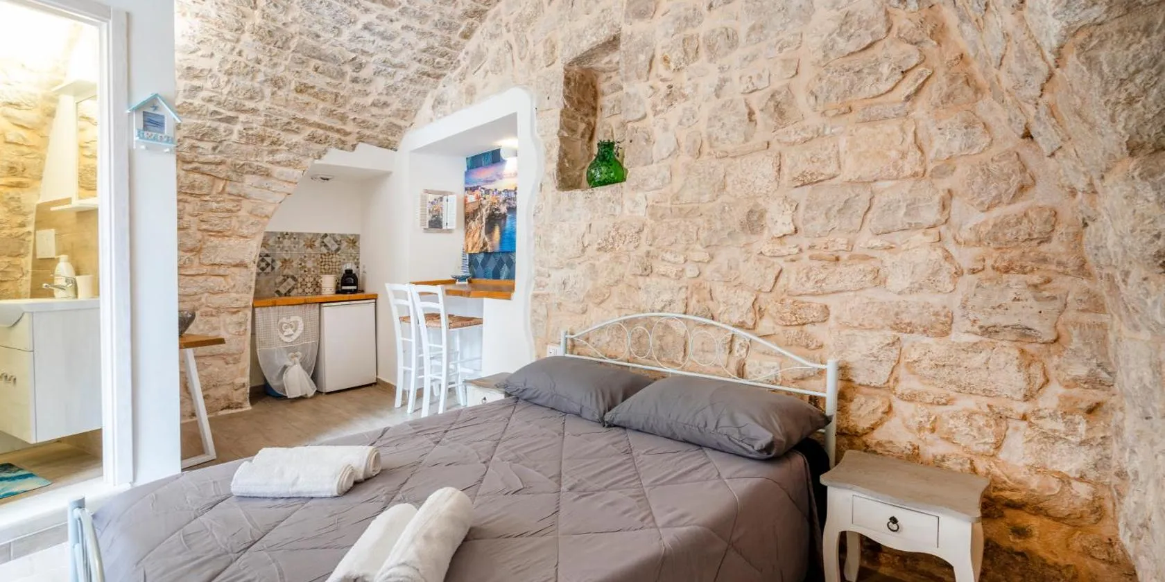 カザマッシマにあるB&B Guariniはバーリ・チェントラーレ駅から20km、Petruzzelli Theatreから20kmで、無料WiFi付きのユニットと庭を提供しています。 すべてのユニットには専用バスルーム、ビデ、エアコン、薄型テレビ、冷蔵庫が備わります。一部のユニットにはキッチン(食器洗い機、オーブン、コンロ付)も備わります。 B&B GuariniからBari...
