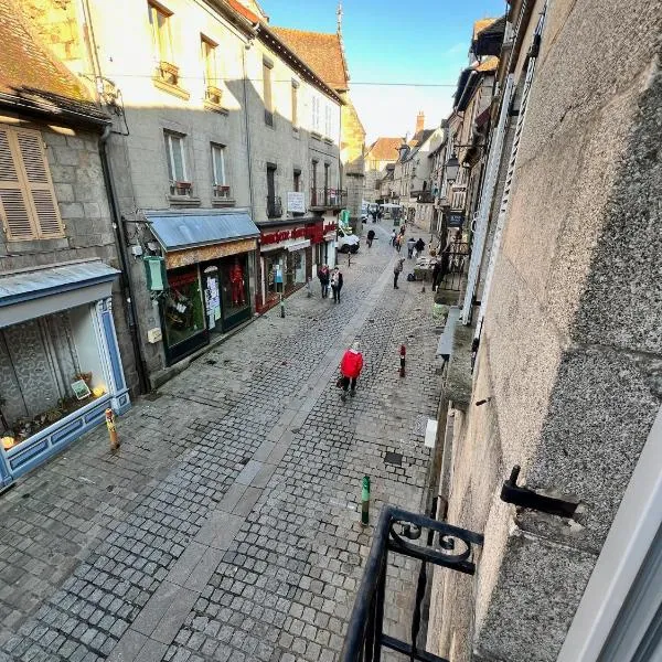 市街の景色を望むManornella, beaux volumes, grand garage idéal Mas du Closはリムーザン地域圏のオービュッソンにあり、バルコニーを提供しています。シャメ・ゴルフから44kmの宿泊施設で、テラスと無料専用駐車場を提供しています。