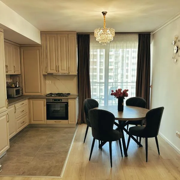 Menawarkan taman, teres, dan bar, Liberty apartment menyediakan penginapan di Moşniţa Nouă dengan WiFi percuma dan pemandangan taman.