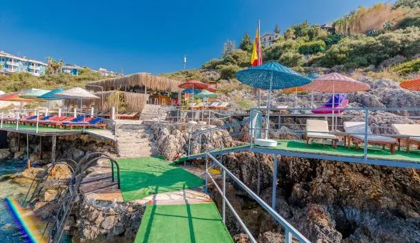 Commanding views of the Mediterranean Sea, the hotel enjoys a beachfront location in Kas's natural environment.