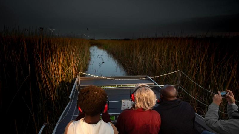 夜に中央フロリダのエバーグレイズを通り抜けるライドと自然公園への訪問