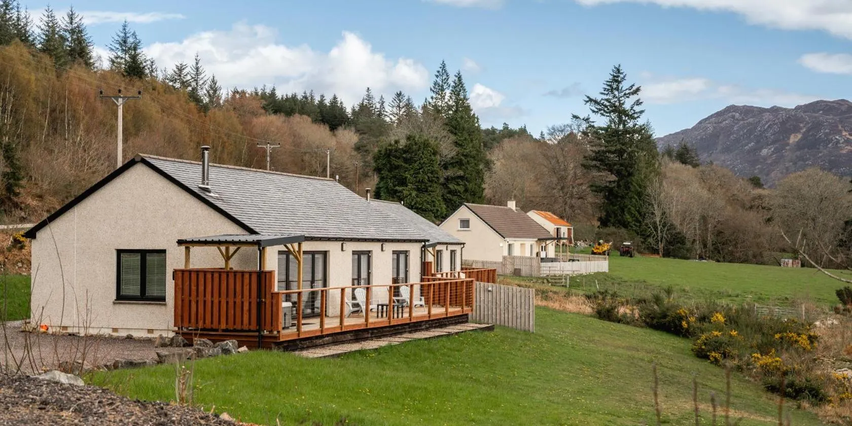 Loch Ness Highland Cottages with partial Loch ViewCottages are located at the edge of a forest, 1 minute walk from Loch Ness. There is free parking and free WiFi.