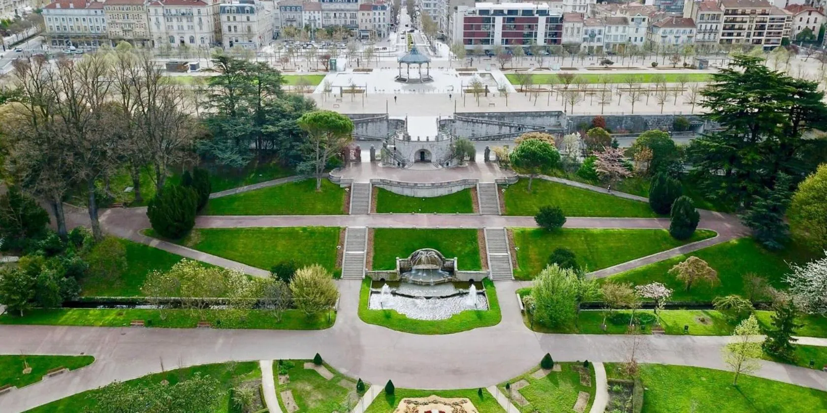 山の景色を望むAppartement terrasse au coeur de Valence 54はヴァランスにあります。共用ラウンジを提供しており、ヴァランス・パルクエキスポまで徒歩12分、Valence Multimedia Libraryまで500mです。無料WiFiを提供しており、専用駐車場(有料)を手配できます。