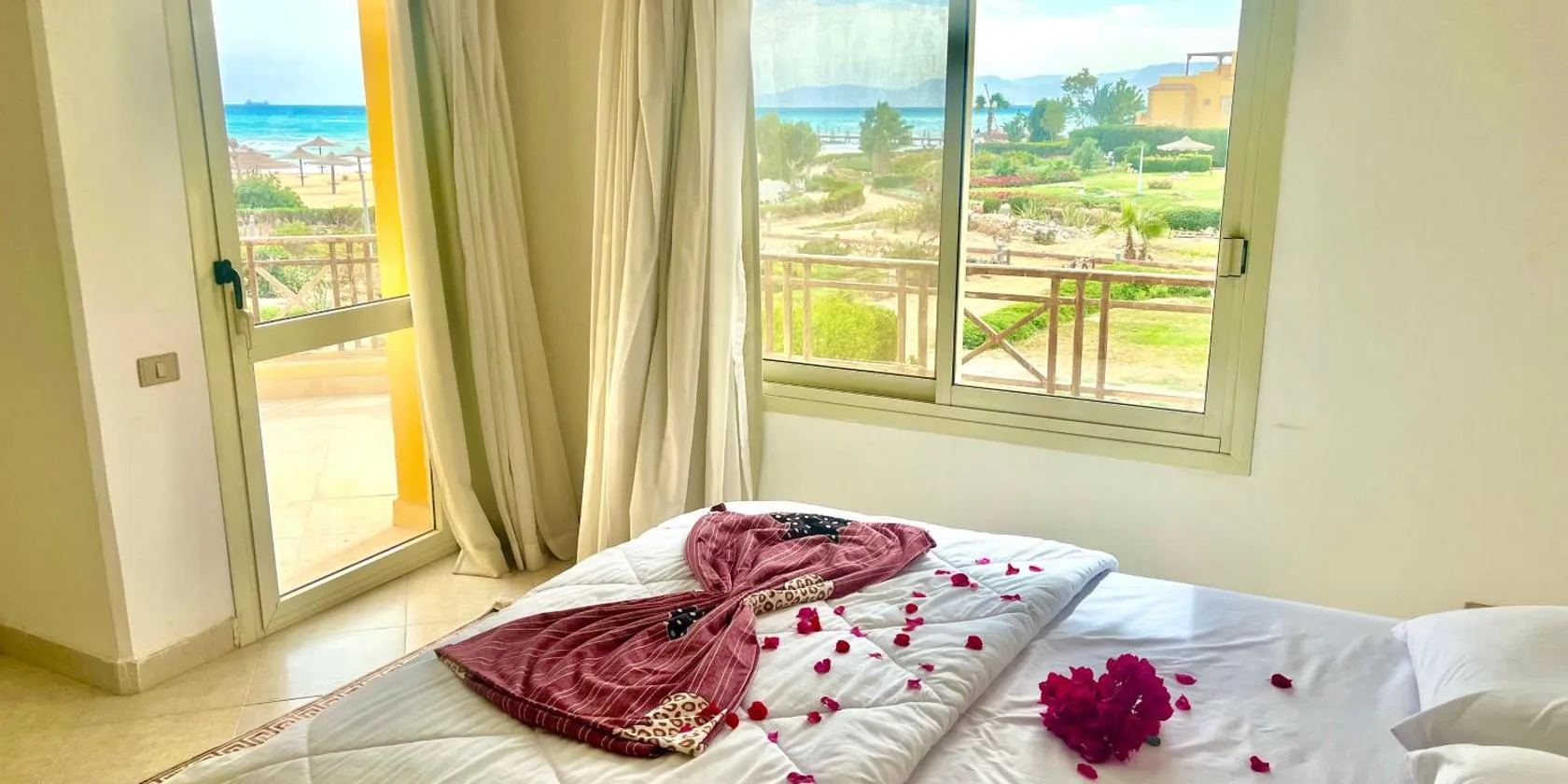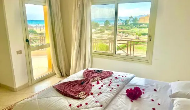 Resort bertaraf 5 bintang ini menawarkan bilik-bilik berhawa dingin yang menghadap ke pantai peribadi dan Teluk Suez.