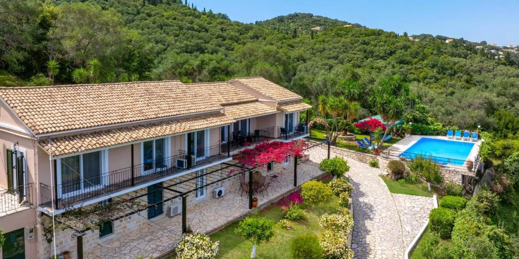 Menawarkan kolam renang luaran, taman, dan lounge berkongsi, Villa Orama Corfu menyediakan penginapan di Karyótikon dengan WiFi percuma dan pemandangan laut.